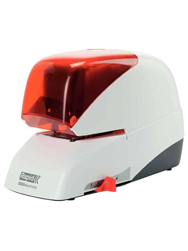 Elektrisk hæftemaskine med kassette ladning af klammer. 5.000 hæfteklammer per kassette. Ekstrem holdbar.Hæfter op til 50 ark papirer (80 g)Patenteret kassette-hæftningsteknologiSlidte dele udskiftes ved hver ny hæfteklamme-kassette skiftJusterbar hæftedy