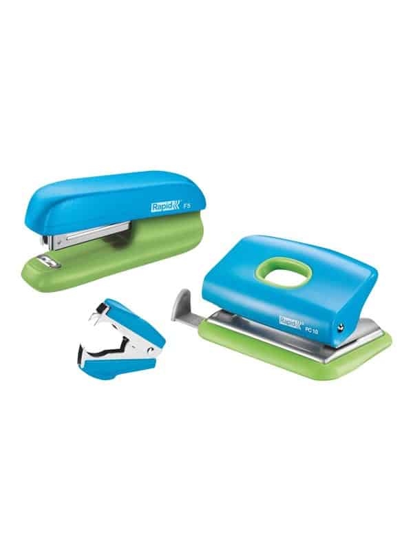 10 ark. Trendy og farverig. Inklusiv hæfteklammefjerner og æske med hæfteklammer. I blisterpakning.Hæfter op til 10 ark papirer (80 g)Smart og kompakt, let-at-bruge hæftemaskineIntegreret hæfteklammefjernerBekvem topladning af hæfteklammer