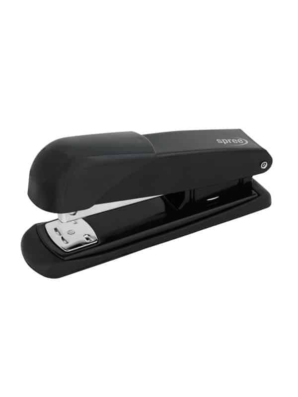 Sort hæftemaskine.24/6 – 26/6. Hæfter op til 25 ark. 60mm. hæftedybde. rummer op til 100 hæfteklammer. Metal med gummi elementer. Vendbar klammeskål. Leveres i kartonæske.